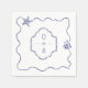 Des serviettes de mariage à thème côtier ornées d'étoiles de mer dessinées à la main et de doodles en coquille de mer ainsi qu'une crête de couple qui peut être personnalisée avec chacune de vos initiales. Les couleurs du texte et de l'illustration sont en bleu marine nautique et le style décontracté et amusant est parfait pour des célébrations plus informelles de plage, de réception tropicale et de bord de mer et de douche.