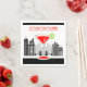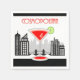 Des serviettes en papier pour les buveurs Cosmo sont décorées d'une boisson cosmopolite contre un arrière - plan de la ville. Ambiance très moderne en noir blanc et rouge avec le mot Cosmopolitan écrit dessus dans une teinte rouge.