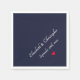Créez votre propre personnalisation, personnalisée, élégante typographie blanche / calligraphie / script / police sur bleu marine foncé arrière - plan, marié / nom du couple, mariage / date anniversaire, coeur rouge, votre choix de couleur blanche ou écru, forgé ou de style standard, contact alimentaire, cocktail de fête déjeuner sur le dîner serviettes en papier qui ont l'air bien caché dans le col ou drapé sur votre lap. Il suffit de taper les noms de la mariée et du mariée ou de la femme et du mari, et la date du mariage, pour customiser. Serviettes élégantes en papier, parfaites pour la réception de mariage, les célébrations d'anniversaire, la fête de fiançailles, etc.