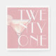 Serviettes modernes de 21e anniversaire avec élégante typographie chic et design minimaliste en couleur rose
