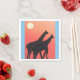 Ces serviettes de cocktail blanches sont conçues avec ma représentation de deux girafes silhouettées contre un coucher de soleil orange.
