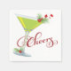 Typographie moderne Cheers Cocktail Vacances Noël Papier de fête Naples avec un verre vert martini orné de saint et d'un sucre de canne rayé rouge & blanc