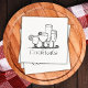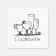 Une simple serviette de cocktails en noir et blanc représente un dessin de quatre cocktails avec le mot "cocktails" écrit ci-dessous dans une police créative.