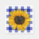 Tournesol jaune avec centre en forme de coeur et coccinelle sur buffle bleu et blanc plaid.