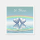 Des serviettes avec ma conception originale de deux coeurs en platine flottant sur l'eau sous un arc-en-ciel. Le texte personnalisable dit "70 ans".