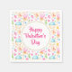 Serviettes en papier de la Saint Valentin avec un motif délicieux et fantaisiste. Coeurs, lettres d'amour, muffins, tulipes et cerises apportent joie et bonheur à ce mignon petit motif. Jolies couleurs pastel. Un cercle blanc avec une fausse bordure en feuille d'or superposée avec votre texte à l'intérieur.