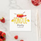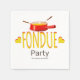 Serviettes en papier conçues pour une fête de fondue célébrée à tout moment. Vous pouvez changer le mot "Party" et la date/nom de la partie pour convenir à votre occasion .Design typographique avec des polices étroites dessinées à la main, des coeurs et un pot de fondue graphique.