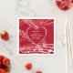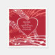Serviettes en papier personnalisées pour la Saint-Valentin avec musique Hearts modernes, montrant des portées de musique blanches et pêche sur un fond rouge riche, et un cœur au centre avec TEXTE PERSONNALISABLE, que vous pouvez personnaliser avec votre/vos nom(s) et message. Cela ferait un excellent ajout à vos fournitures de fête de la Saint-Valentin ou de fiançailles, et peut également être personnalisé pour les anniversaires de mariage, les anniversaires et les jours 'Juste pour le plaisir'. Cadeaux, cartes et fournitures de fête assortis disponibles parmi une large sélection de modèles de Berean Designs.