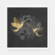 Colibris de bijoux en noir et or sur arrière - plan gris décoré de plantes. Bijoux. Oiseau doré. Oiseau d'or.