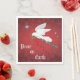 Éclaircissez votre table de Noël avec ces belles serviettes de fête de Noël "One of a Kind" ! Une colombe blanche sereine volant au milieu des étoiles portant une branche d'olivier avec des rubans rouges et verts...Souhaitant à tous..."Paix sur Terre" ! C'est une création artistique originale de l'artiste Kerry Miller.