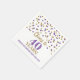Des serviettes personnalisables pour la fête du 40e anniversaire avec des confettis en or et en parties scintillant violet.