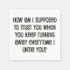 Pour l'amoureux du sarcasme en chacun de nous. Regardez cette histoire : "Comment suis-je supposé vous faire confiance si vous continuez à courir chaque fois que je vous détache ?" design sur les vêtements et les cadeaux.