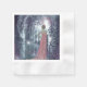 "Twilight Gatekeeper" Une femme gracieuse dans une robe rose-rose qui coule devant une porte mystique, éclairée par la lune, entourée d'une lumière éthérée et d'une flore enchantée. Son dos est tourné, comme si elle était sur le point d'entrer dans un royaume magique au-delà de l'arcade ornée. La scène mêle élégance et imaginaire, invitant le spectateur à imaginer les secrets qui se trouvent de l'autre côté.