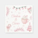 Charming “Cookies & Cocoa” birthday napkin with a pink hot cocoa mug and soft pastel winter accents. Perfect for adding a warm and sweet touch to your cozy birthday celebration. Lovely aesthetic for party tables and dessert setups.
