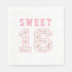 Ce design sucré de 16 serviettes comporte le numéro 16 dans un motif rose de cottage rose avec Sweet dans une police de varsity rose.