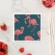Motif vectoriel avec flamants dessinés à la main en couleur corail vivant sur arrière - plan bleu foncé.