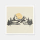 Grunge de style rétro simple illustration de coucher de soleil de montagne avec montagnes, soleil et pins décoration