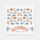 Ces serviettes en papier pour la fête d'anniversaire sont décorées dans un style occidental charmant, parfait pour les garçons ou les filles qui fêtent leur anniversaire dans un style rustique. Le motif présente une illustration aquarelle de casquettes de cowboy, de bottes d'équitation et de fer à cheval dans des tons bleu et marron. Placés contre un arrière - plan blanc propre, les teintes terreuses et les touches délicates apportent une touche rustique et ludique au design. Sous le graphique, il y a de l’espace pour un nom personnalisable dans un script rouge moderne et ludique et une simple date bleue en typographie propre, ornée de petits feuilles bleu aquarelle, ajoutant une touche personnalisée tout en gardant l’ambiance occidentale fraîche et amusante.