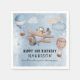 Serviettes de fête d'anniversaire mignonnes, adaptées à tout âge! Le design comprend un arrière - plan de ciel bleu aquarelle, un petit garçon volant un avion vintage, des montgolfières, des nuages moelleux et des étoiles magiques, un titre "HAPPY BANTHDAY" avec l'option de customiser l'âge, leur nom et le doux dicton "le temps vole quand vous vous amusez !".