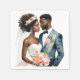 L'aquarelle présente un beau couple à la peau brune comme mariée et mariée. Cet article mélané a une palette de couleurs pêche et corail avec des accents floraux.