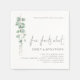 Couple Fun Facts Eucalyptus Anniversary Party. Fun Facts About est dans un ensemble élégant script. Le reste du texte que vous pouvez facilement personnaliser. Les feuilles de l'eucalyptus aquarelle sont à gauche du texte.