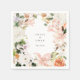 Couronne de fleurs botaniques de jardin, serviettes en papier personnalisées. Élégantes fleurs et feuillage aquarelles rose blush, pêche, blanc, lilas et vert. Le modèle prévoit deux espaces pour les noms et la date de l'événement.