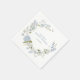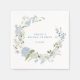 Élégantes serviettes florales bleues présentant une superbe couronne florale à l'aquarelle, avec des fleurs printanières pastel douces délicates bleu poussiéreux et blanches, telles que l'hortensia.