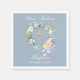 Serviette En Papier Couronne florale rose baptême baptême bleu poussié