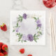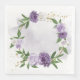 Belle mauve violette et fleurs blanches & feuilles verts contre aquarelle arrière - plan couronne botanique mariage papier serviette