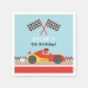 Serviettes en papier de fête avec un thème de course design! Design dispose d'une voiture de course de sport rouge avec un petit garçon de course et un drapeau de course en carreaux à damiers noir et blanc. Idéal pour les garçons d'anniversaire qui aiment les voitures de course! Ajoutez votre message de fête !
