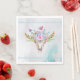 Serviettes en papier avec un arrière - plan d'aquarelle turquoise et pastel. Un crâne animal chic boho avec un bouquet floral sur la tête et des petits papillons qui fleurissent. Une jolie bordure décorative aux petites teardrop en bleu clair.