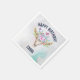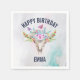 Serviettes en papier fête d'anniversaire avec un arrière - plan d'aquarelle turquoise et pastel. Un crâne animal chic boho avec un bouquet floral sur la tête et des petits papillons qui fleurissent.