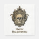 Ces serviettes Halloween Vintages hantent un cadre orné avec un motif crânien au centre sur un arrière - plan damassé marron. Les mots "Happy Halloween" sont épelés dans une police pirate.