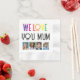 NOUS AIMONS LE CADEAU, MODIFIER AJOUTER PHOTO NAPKINS RAINBOW NOUS AIMONS... mère CRÉER VOTRE PROPRE AJOUTER 4 PHOTOS Pour la célébration ou les félicitations personnaliser votre propre serviette mère jour ou anniversaire nous aimons maman Célébrez quelqu'un spécial avec cet arc-en-ciel personnalisé "We Love.." serviettes, avec espace pour ajouter 4 photos personnelles et texte. Que ce soit "We Love Mom", "We Love Grandma" ou toute personne proche de votre coeur, ces serviettes personnalisées sont parfaites pour la fête des mères, les anniversaires, les réunions de famille ou toute célébration significative. Lumineux, amusants et faciles à customiser, ils apportent une touche chaleureuse et colorée à tout événement.