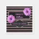 Fille violet et noir de la fête de graduation customisée serviettes en papier - Black et violet clair look métallique arrière - plan rayé. Des coins décorés de marguerites violettes lavande. Photos florales réelles. Nom du diplômé en lettres lavande assorties encadrées en métal noir look cadre rectangulaire. Classe de avec l'année personnalisée en dessous sur un faux tableau noir avec parties scintillant argent cadre de bord. Des serviettes de remise de diplômes violet pour filles, avec le thème de la fête de remise des diplômes de jardin, la remise des diplômes de plein air ou la décoration de remise des diplômes de girly. Vous trouverez des articles de remise de diplômes et d'autres styles de fête dans notre boutique Zazzle/angela65.