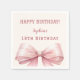 Couleur arrière - plan crème, beige. Décoré d'un grand arc rose. Personnalisez et ajoutez le nom et la date. Texte : Joyeux anniversaire !