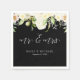 Ces serviettes romantiques de réception de mariage ont une cascade fleurie en ivoire avec les mots "m. & mrs." ci-dessous en élégant script d'écriture blanche sur un arrière - plan noir dramatique. Customisez avec les noms de la mariée et du marié et la date du mariage. Idéal pour une mariage avec un thème fleuri ivoire ou crème.