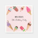 Crème glacée Papier à la crème Paillette Napkin avec cônes et popsicles de crème glacée rose, Bleu, Brun, Vert, violet, coloré. Serviettes en papier pour anniversaire, fête d'été, fête de la crème glacée, baby shower. Utilisez cette option de modèle personnalisée pour modifier le texte de cette serviette élégante en papier. Vous pouvez modifier la couleur, la couleur et le style de l'arrière - plan à l'aide de l'option customiser plus loin.