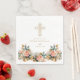 Serviette En Papier Croix dorée élégante et ornée, baptême floral