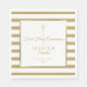 Serviette en papier élégante dorée et blanche rayée pour la Première Sainte Communion avec une croix dorée et une bordure de faux foil doré chic qui encadre les détails de l'événement de célébration dans un texte moderne. Personnalisez avec le nom de votre enfant et la date spéciale. Conçu par Thisisnotme©