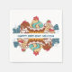 Serviettes de fête d'anniversaire avec une rangée de succulents cupcakes à l'air avec tourbillons et cerises et le givrage délicieux. Illustré dans un style rétro classique. Les couleurs sont vert rétro, rouge, bleu et crème.
