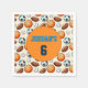 Add a fun and personal touch to your party table with these custom birthday napkins featuring a playful pattern of sports balls and personalized with the birthday child’s name and age number. The bright, energetic design is perfect for kids who love basketball, soccer, football, and baseball.