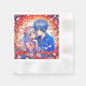 Adorable dessin animé garçon et fille couple marié et marié avec des fleurs rouges et bleues et les coeurs mariage serviettes en papier.