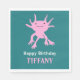 Add your own custom message to create personalized party supplies for birthday parties and more. These paper napkins feature my cute cartoon style illustration of an axolotl salamander in bright pink set against a teal colored backed with your text in white and pink lettering below. These adorable paper napkins are perfect for kids (of any age!) who love axolotls and other unusual animals.