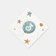 Festive and cute first birthday party paper napkins with an illustration of a blue balloon and the number 3 in white typography. Great for any kid's first birthday or one year celebration, these party napkins will be a delight to use. Illustrated and designed by Patricia Alvarez.
