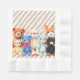 Blue, yellow and brown boy's baby shower paper napkins with cute crocheted bears and bunnies.