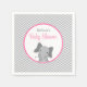 Serviettes modernes en papier baby shower gris et rose pour éléphant. Parfait pour un petit baby shower de fille. Personnalisez facilement !