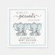 Des serviettes mignonnes pour vos baby showers jumeaux avec "Two Sweet Little Peanuts Are On Their Way" écrit dans une typographie douce et grise et un script élégant avec des swashes et des aquarelles bleu pastel d'un bébé éléphant. Personnalisez le nom et la date de la douche de la future mère dans une simple typographie grise.
