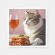 Serviette En Papier Cute Gray Chat avec Lasagne et Verre à Vin