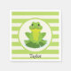 Serviette En Papier Cute Grenouille verte sur Motif rayé